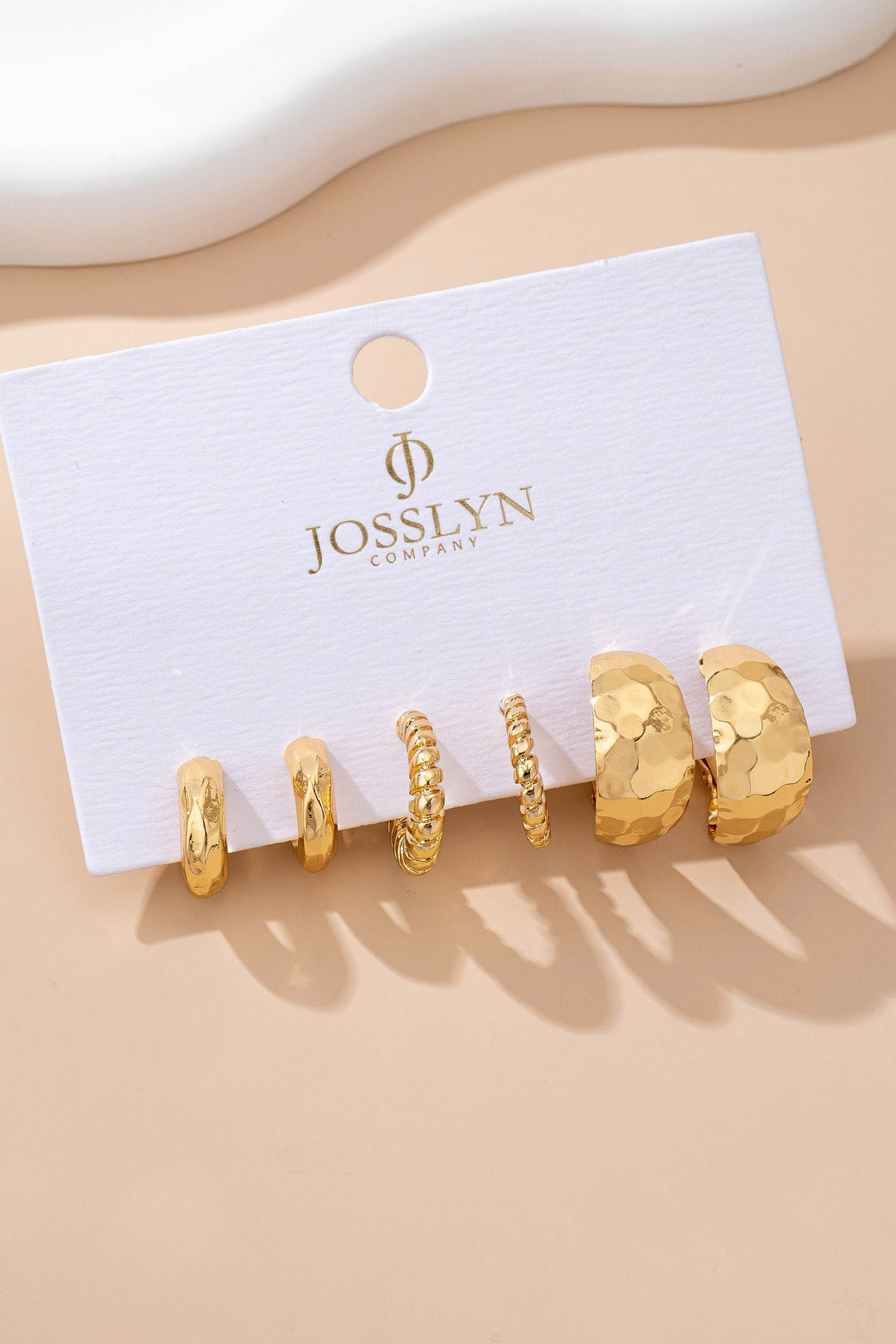 GOLD TEXTURED EARRING SET - 3 PAIRS