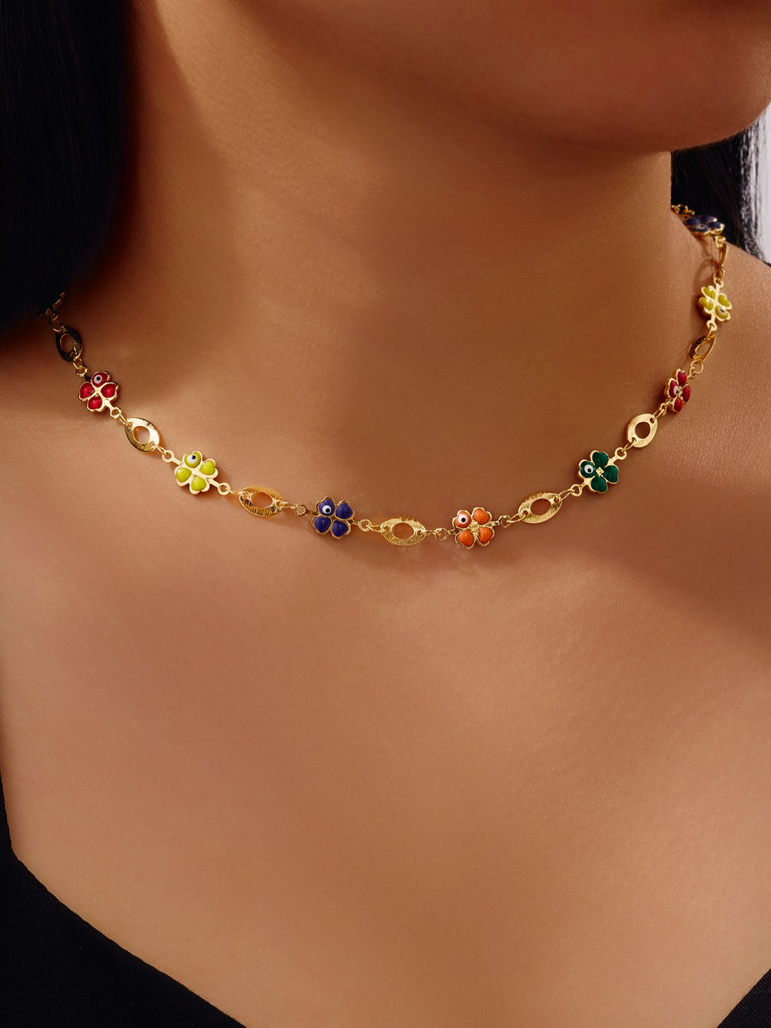 MULTI-COLOR ENAMEL CLOVER NECKLACE