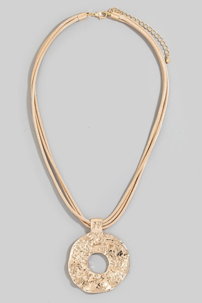 HAMMERED CIRCLE PENDANT LAYERED CORD NECKLACE