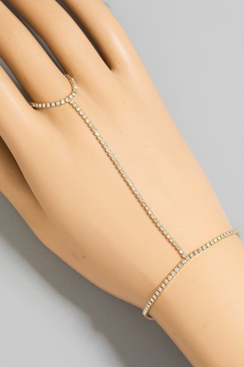 Add instant glam to your look with our Intricate Hand Tennis Chain Bracelet. Designed to make a dazzling statement, this piece features a sparkling tennis chain that gracefully connects wrist to finger in a delicate loop. Whether you're headed to a girlsβ night out or dressing up your everyday fit, this bracelet brings the perfect touch of elegance and edge.