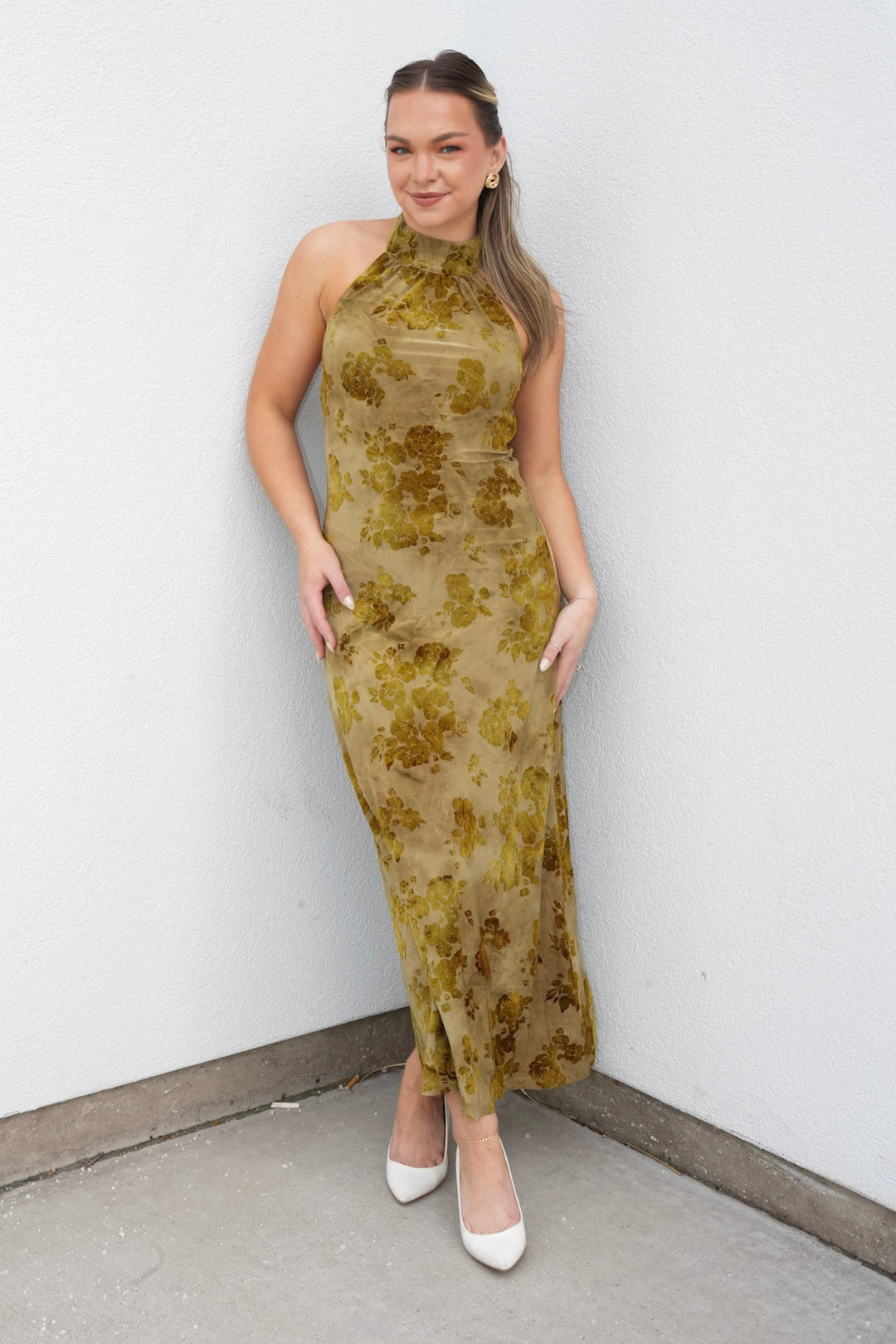 OLIVE GROVE HALTER MAXI DRESS