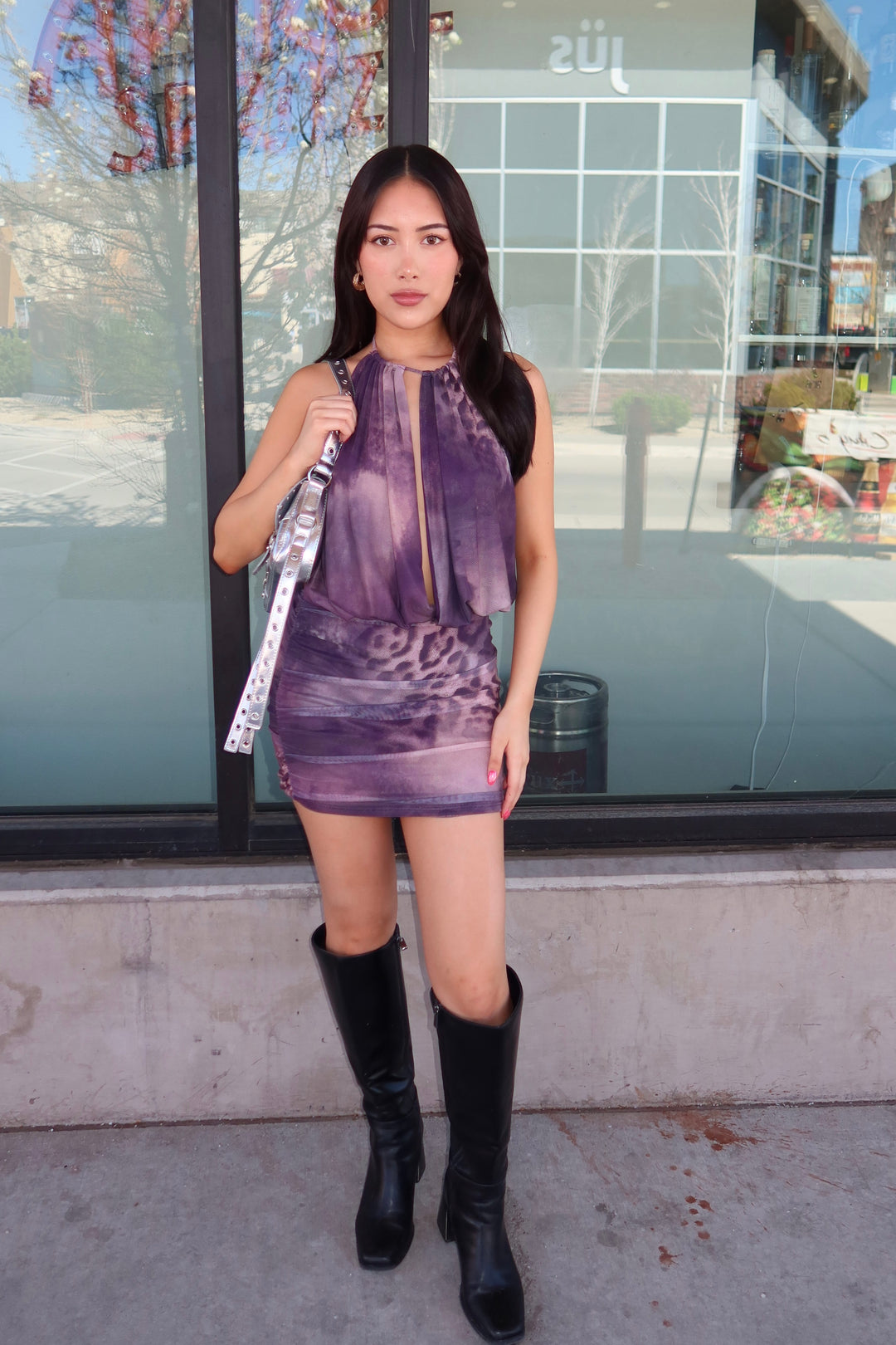 ALEINA MODERN OPEN BACK MINI DRESS