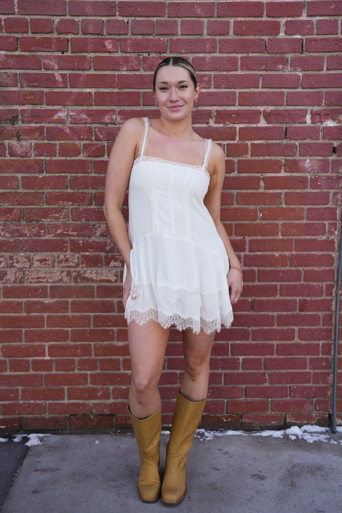 Delicate yet playful, this lace trim babydoll mini dress is designed to exude effortless femininity. Crafted with soft fabric for a flowy silhouette, it features dainty lace-trimmed straps and neckline for a romantic finish.