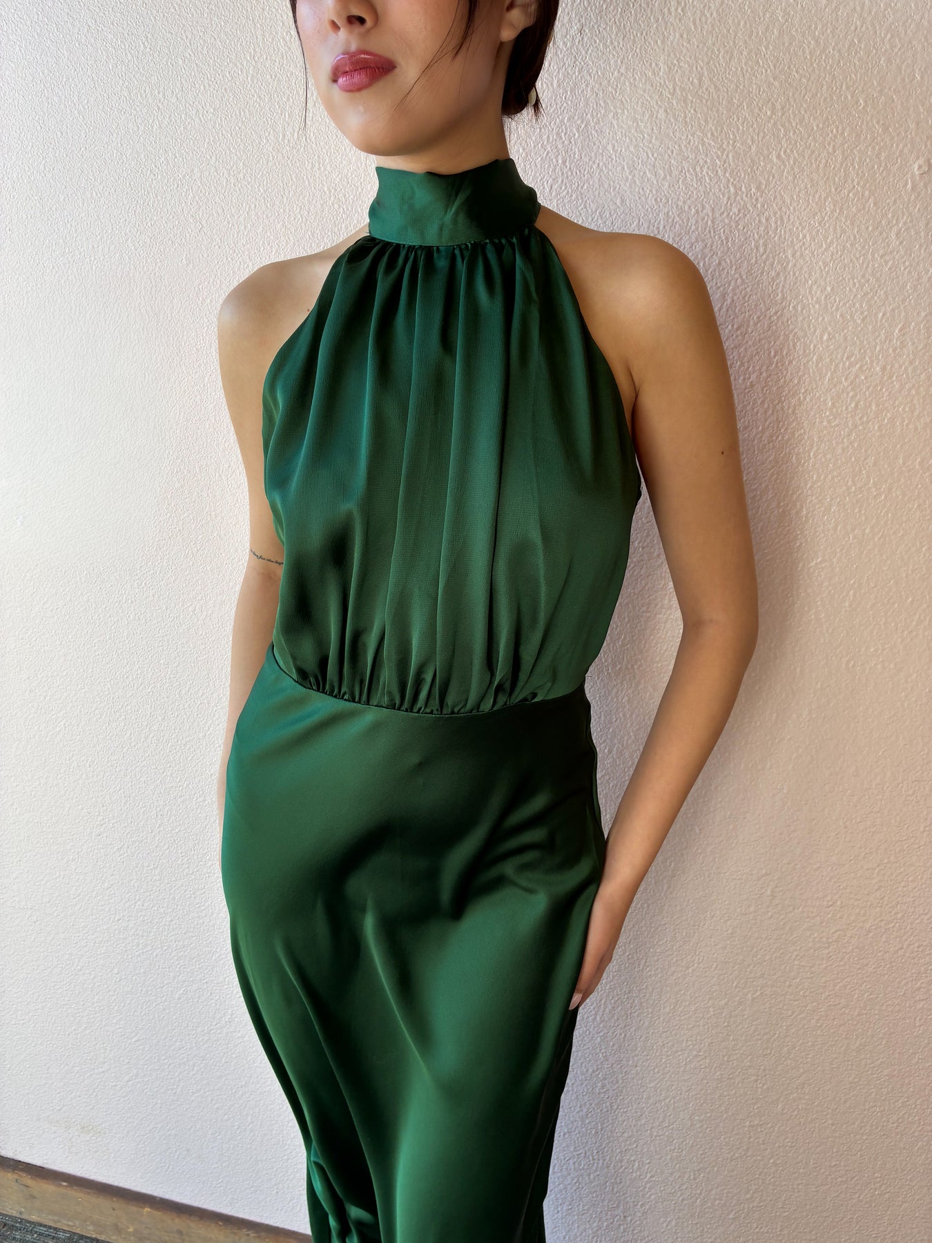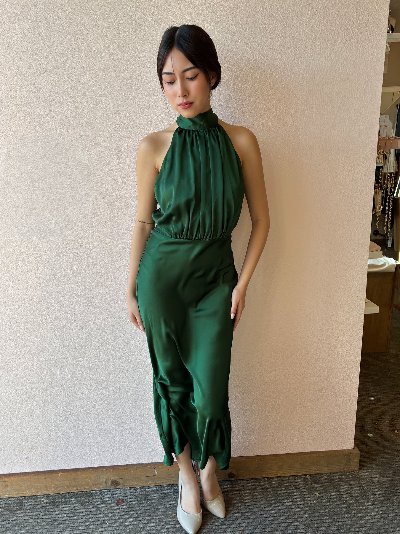 Elegant, timeless, and effortlessly romantic — the Mistletoe Midi Dress is your go-to choice for every special celebration. Crafted from luxurious satin with a gorgeous, glossy sheen, this dress drapes beautifully over the body for a sleek and feminine silhouette. The chic mock neckline adds sophistication, while subtle pleating at the bodice creates just the right amount of shape and flow.