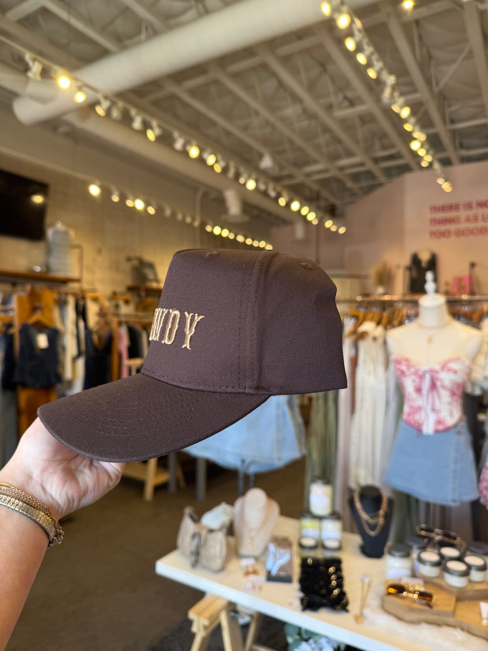 Howdy Hat in Brown with Gold Lettering