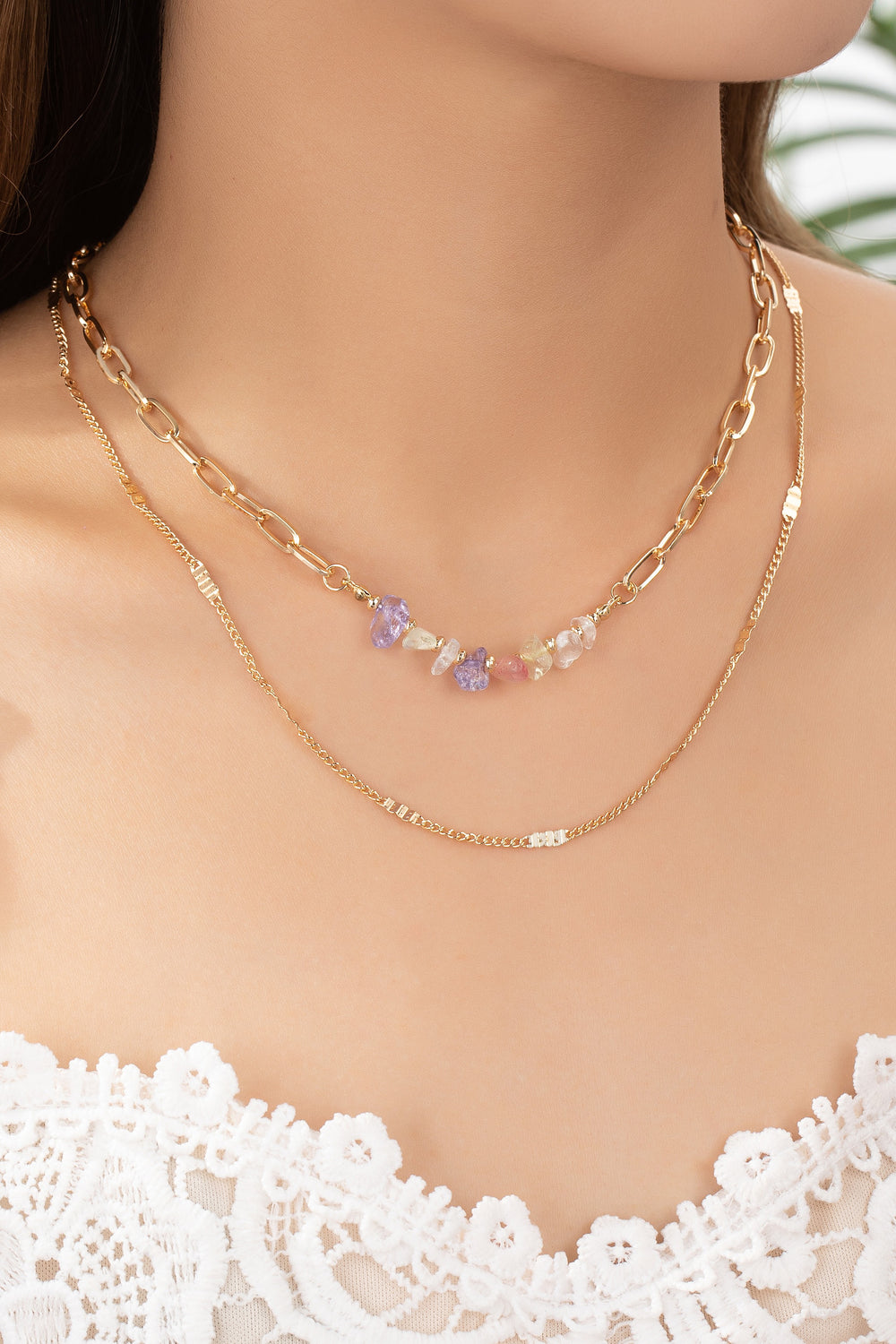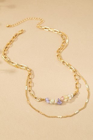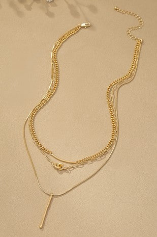 3 ROW NECKLACE WITH BAR, KNOT AND STICK