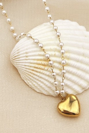 PUFFY HEART SNAKE CHAIN NECKLACE