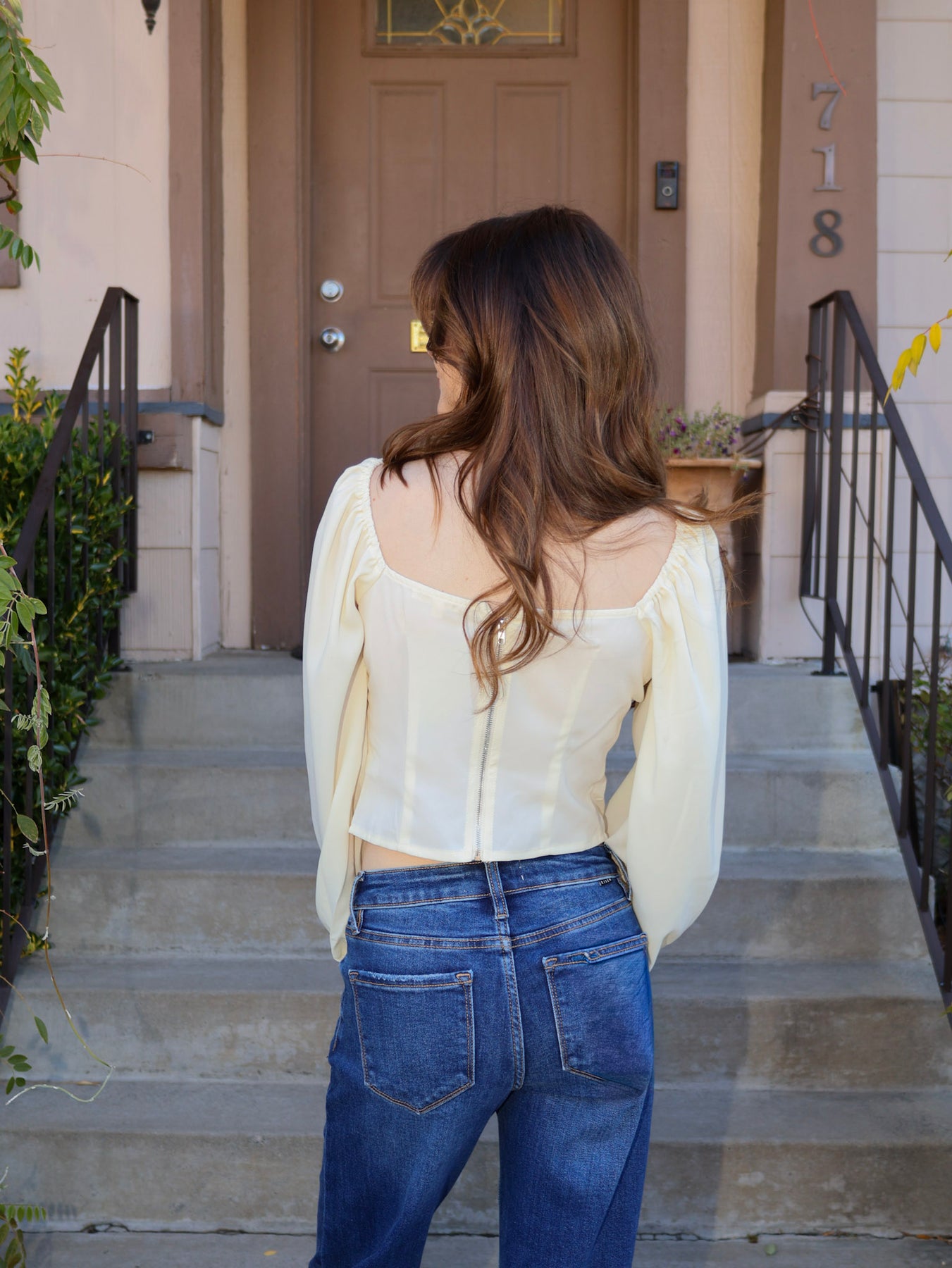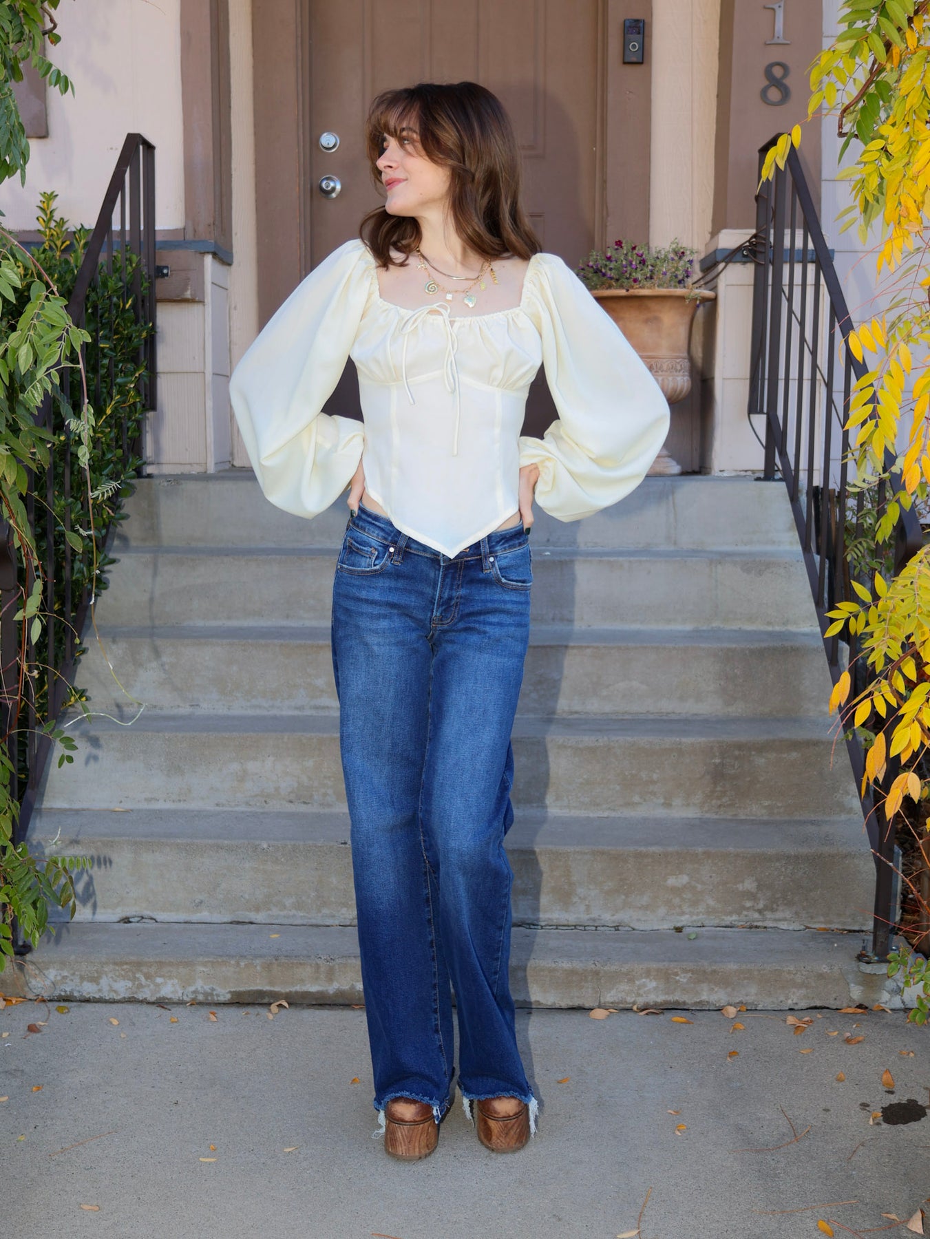 • Billowy long sleeves