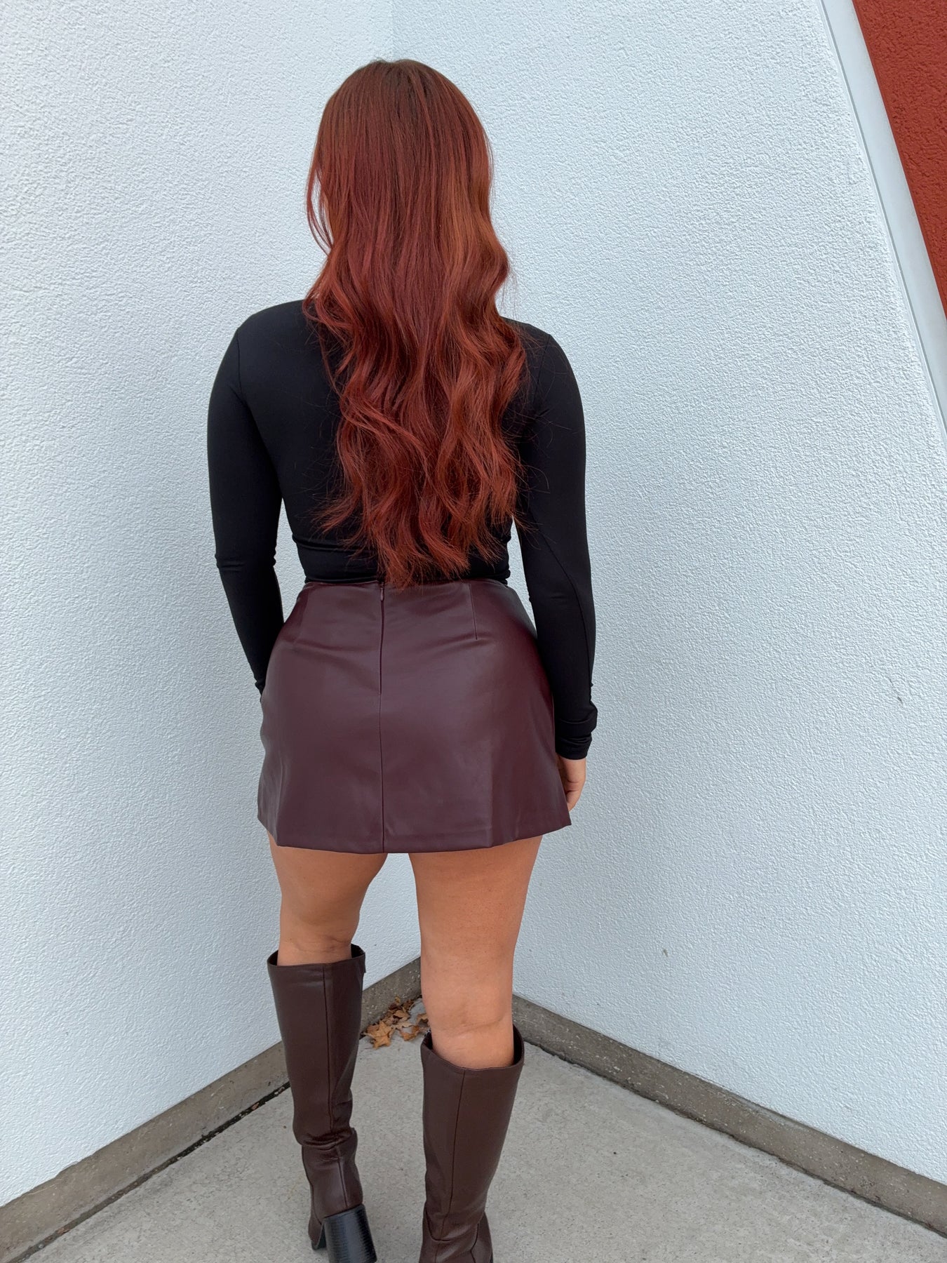 Sleek, chic, and made to turn heads — the Saloma Faux Leather Skort gives you the best of both worlds. Featuring the look of a mini skirt with the comfort and coverage of built-in shorts, this piece is a total wardrobe essential. The mid-rise waist and subtle side slit add just the right touch of edge, while the smooth faux leather finish elevates any outfit. Pair it with a chunky knit, blazer, or statement top for a confident, on-trend look.