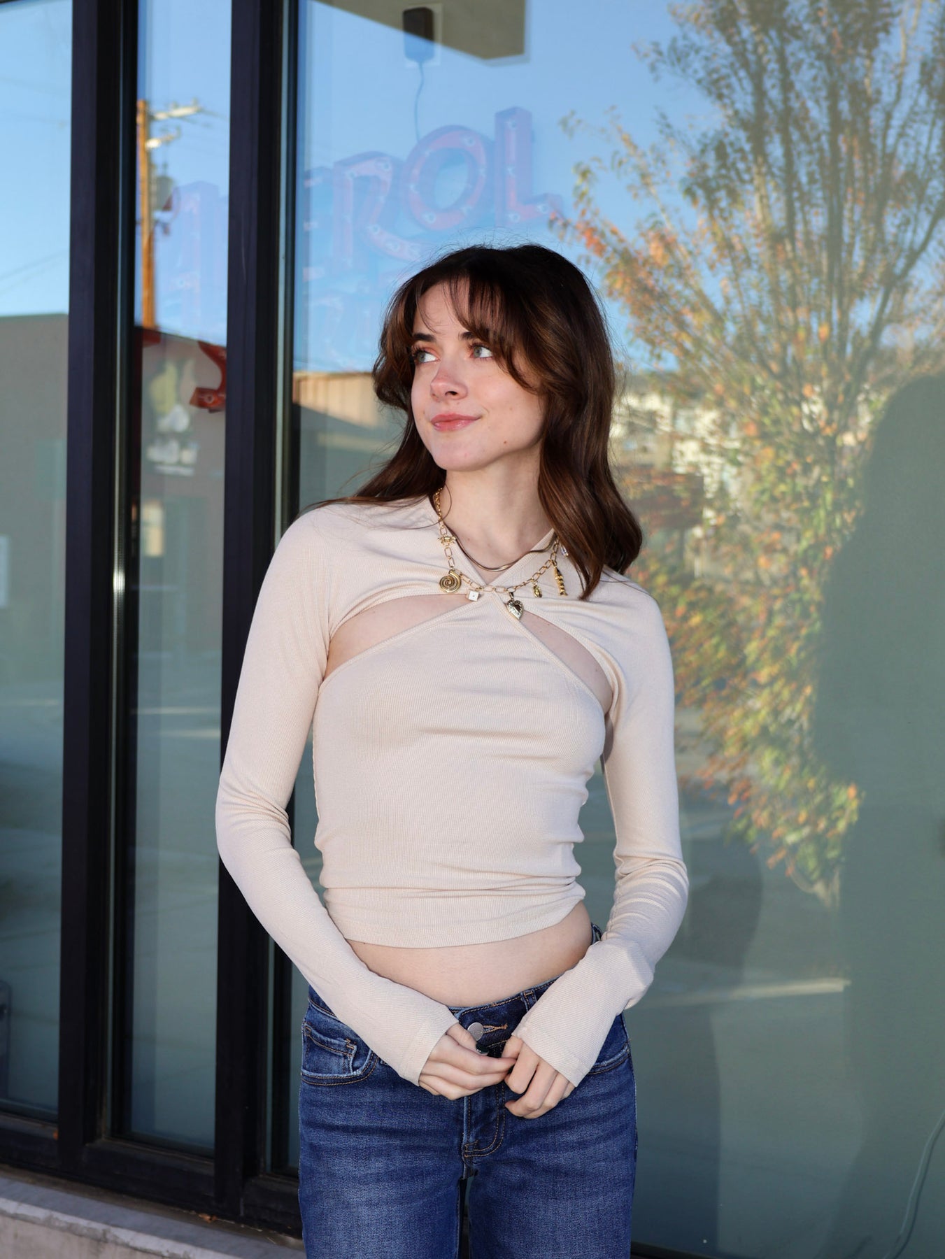 Turn heads in the Emalia Long Sleeve Top — a modern, flirty essential designed with bold cut-out detailing for effortless cool-girl energy. Crafted from a soft ribbed knit, this top stretches comfortably while contouring your shape in all the right places. The asymmetric front and back cut-outs create a statement silhouette, making it perfect for nights out, layered looks, or styled with denim for an elevated everyday fit.