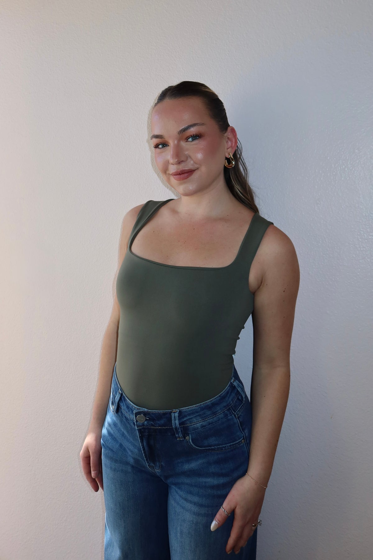 The Plain Square Neck Tank Bodysuit is perfect for anyone who loves sleek, versatile basics with modern style. The square neckline is flattering and contemporary, creating clean lines that frame your shoulders beautifully. The sleeveless tank design is classic and timeless, perfect for wearing solo in warm weather or layering under jackets and cardigans. Available in two versatile colors – warm mocha for neutral elegance and versatile black for timeless chic. The premium stretch fabric blend of 92% nylon and 8% spandex creates a smooth, body-hugging fit that feels like a second skin. The bodysuit construction features a snap closure at the bottom that keeps your top perfectly tucked in all day long – no more adjusting or re-tucking! The fitted silhouette flatters your curves beautifully without being too tight. The seamless construction creates a smooth finish that eliminates visible lines under clothing, making it perfect for wearing under high-waisted jeans, skirts, or trousers. Perfect for everyday wear, layering, work, casual outings, or dressed-up occasions. Pair with high-waisted jeans for casual-chic vibes, style with skirts for feminine elegance, wear with trousers for work-appropriate polish, or layer under blazers for sophisticated style. A versatile essential that brings flattering fit, modern style, and sleek sophistication to your wardrobe!