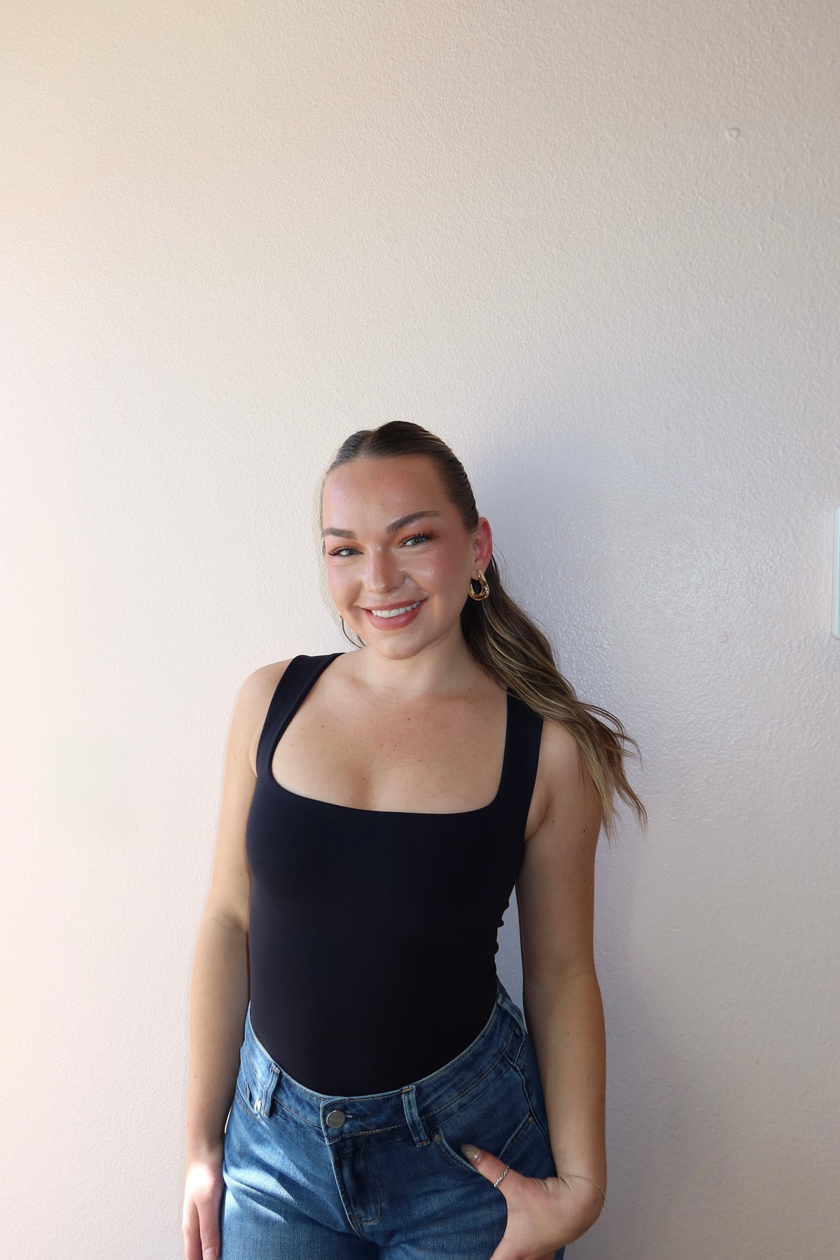 Sleek and versatile, the Square Neck Tank Bodysuit brings effortless style with a flattering fit. This chic bodysuit features a modern square neckline, sleeveless tank silhouette, and smooth body-hugging construction. Available in warm mocha and versatile black. Crafted from premium stretch nylon-spandex blend for a seamless, second-skin fit.